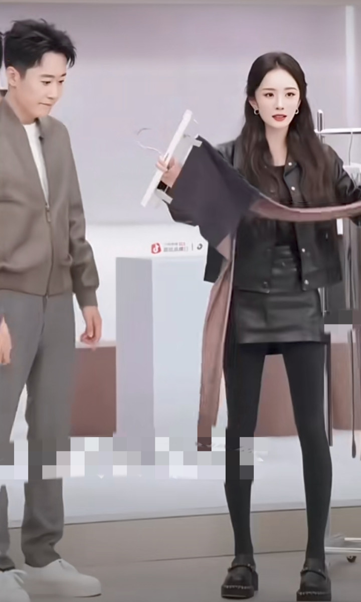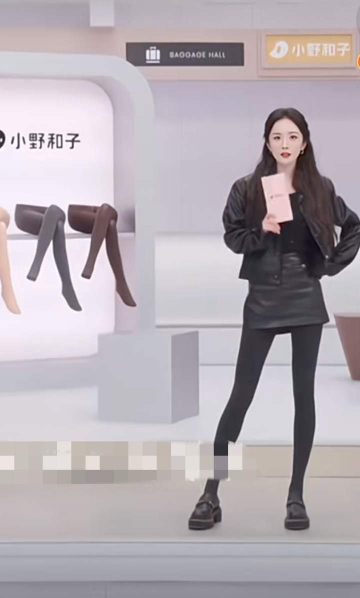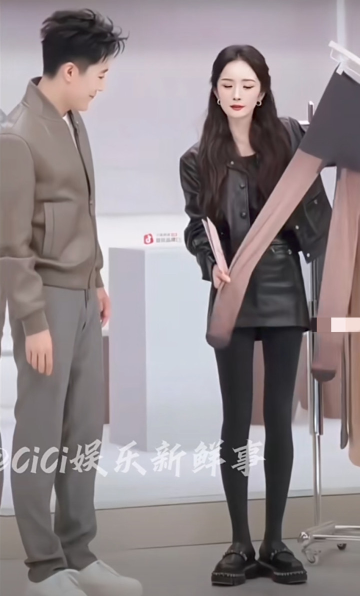 杨幂代言打底裤, 穿黑色打底裤直播, 才发现她双腿已经瘦成竹竿了